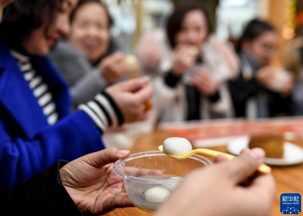 2019年2月19日,在新疆烏魯木齊大巴扎步行街,市民和游客品嘗元宵。新華社記者 王菲 攝