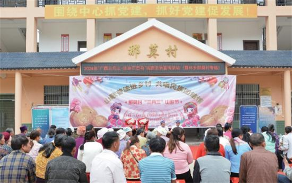 2024年4月9日,以“山歌普法進鄉(xiāng)村·共唱民族團結(jié)情”為主題的普法山歌會在河池市巴馬瑤族自治縣百林鄉(xiāng)那莫村舉行