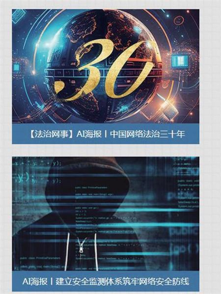 如《中國網(wǎng)絡(luò)法治三十年》一經(jīng)發(fā)布,光明網(wǎng)便推出了數(shù)個(gè)長圖解,對中國網(wǎng)絡(luò)法治三十年進(jìn)行全景式概覽。通過長圖形式,細(xì)數(shù)網(wǎng)絡(luò)法治三十年的三個(gè)階段、實(shí)踐成就、與百姓息息相關(guān)的熱詞等。同時(shí),充分利用前沿人工智能技術(shù),推出系列AI海報(bào)和AI繪報(bào)告,展示中國網(wǎng)絡(luò)法治三十年的成就和閃光數(shù)據(jù)。
