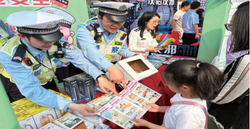 網(wǎng)絡(luò)普法“輕騎兵”在市民公園發(fā)放普法漫畫(huà)、普法繪本等宣傳資料