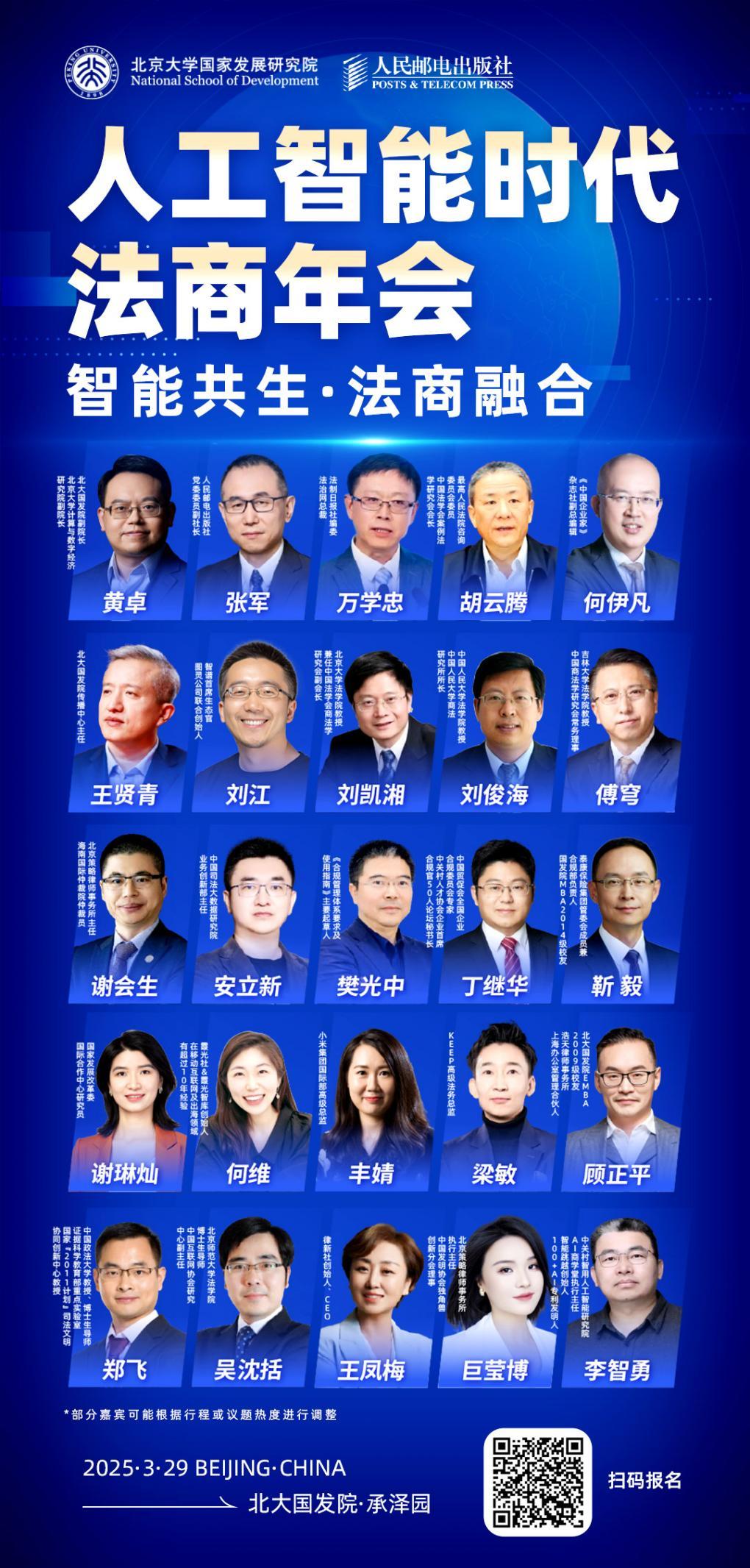 由人民郵電出版社、智元法律課堂聯(lián)合主辦,北京大學國家發(fā)展研究院、承澤商學共同協(xié)辦的“2025人工智能法商年會”將于3月29日在北京大學國家發(fā)展研究院承澤園校區(qū)盛大舉行。