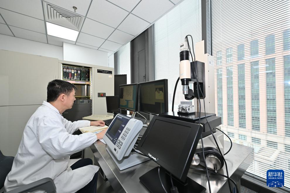 在天津陳塘科技商務區(qū)天津知微材料科技有限公司,檢測人員在進行材料分析(3月26日攝)。