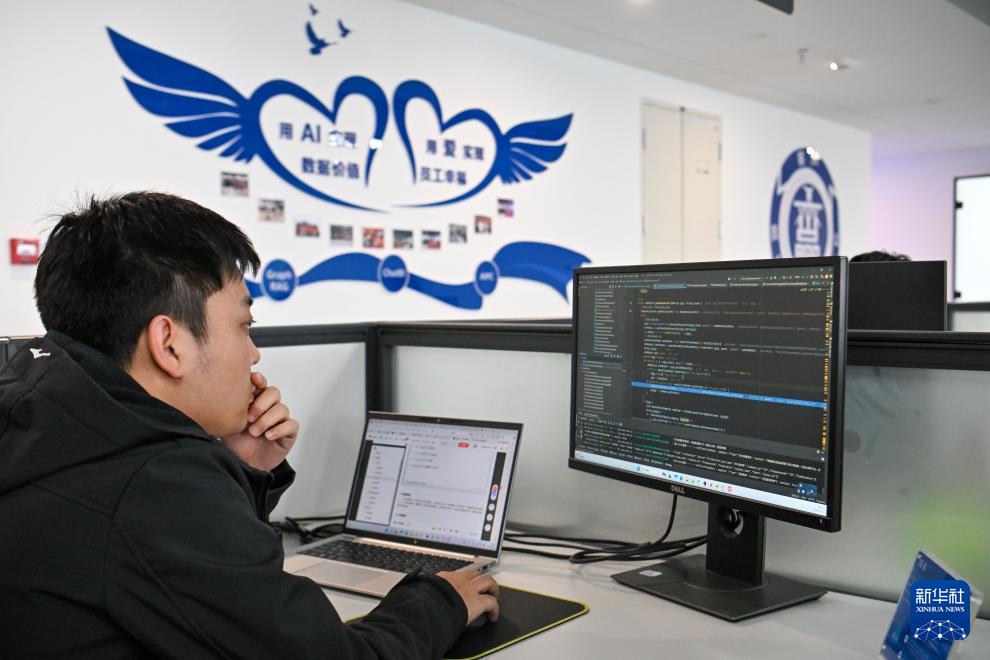 在天津陳塘科技商務(wù)區(qū)天津匯智星源科技有限公司,工程師基于大模型完善GraphRAG智能圖譜系統(tǒng)(3月26日攝)。