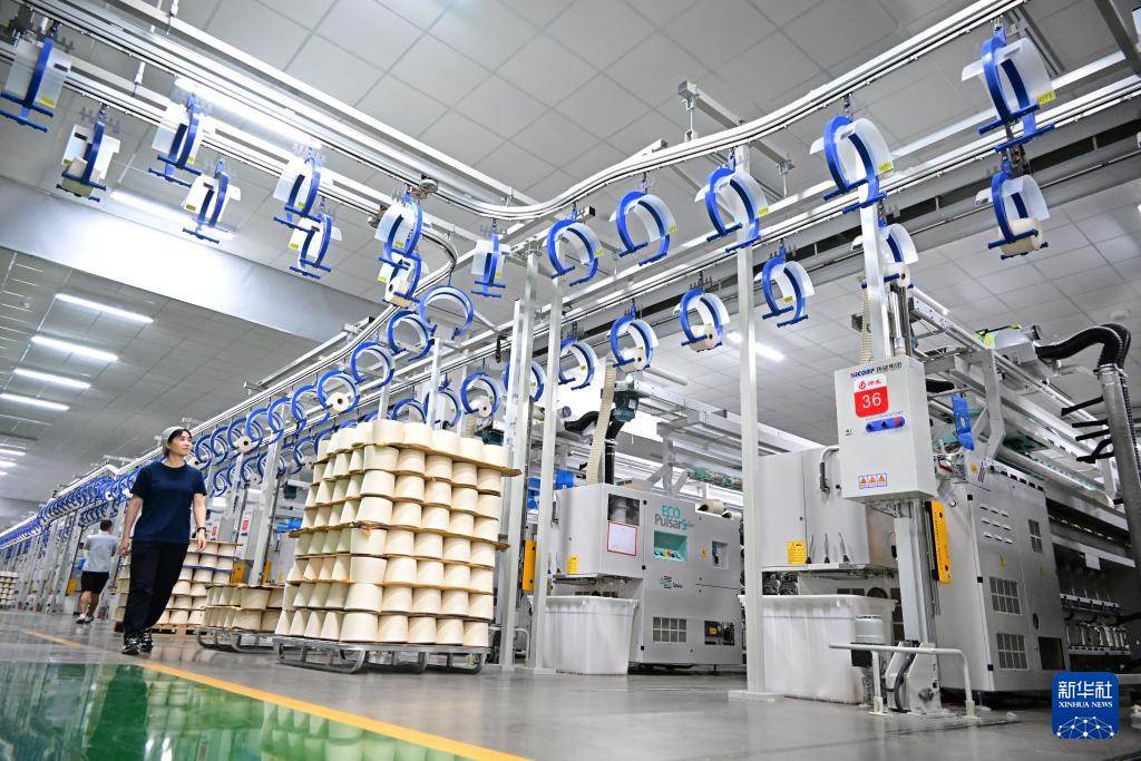 ??在即墨區(qū)一家智慧紡紗企業(yè),新安裝的自動(dòng)化吊運(yùn)傳送設(shè)備在試運(yùn)行(3月25日攝)。