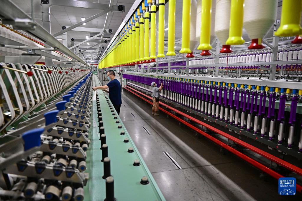 ??即墨區(qū)一家智慧紡紗企業(yè)的職工在全自動粗紗生產(chǎn)線上忙碌(3月25日攝)。