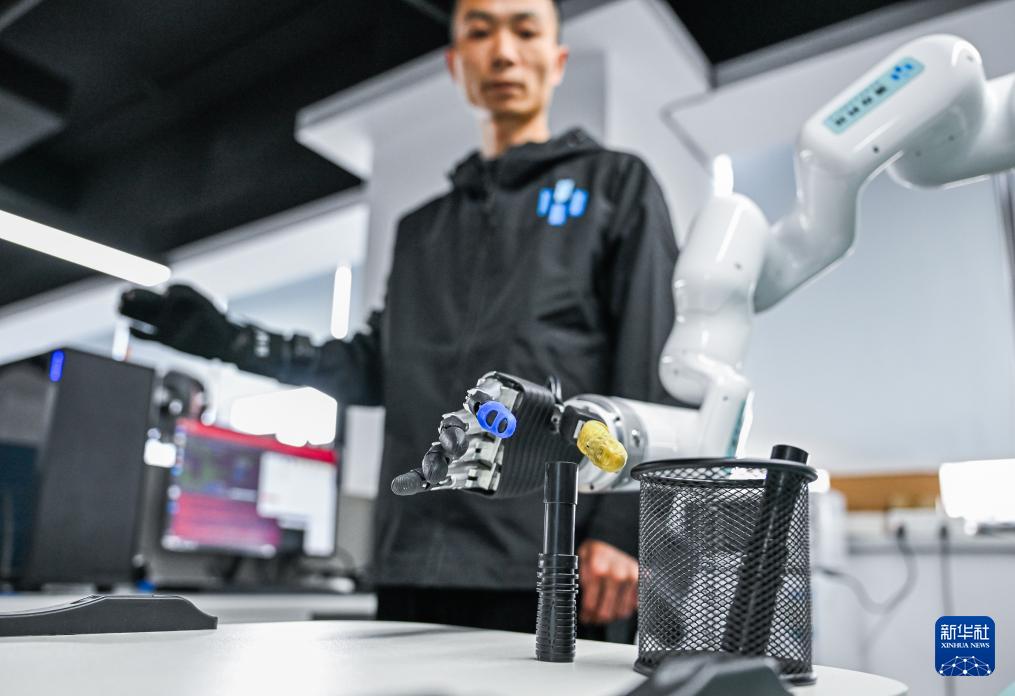 ??在武漢灝存科技有限公司內,一場機械臂與真人的“共舞”正在上演:工程師付龍穿上傳感器設備,動一動身體,屏幕中的虛擬人物便同步完成動作;穿上動態(tài)捕捉裝備,搭載“運動神經(jīng)中樞”的機械臂也能像人的手臂一樣抬舉抓握,甚至能精準捕捉穿戴者指尖的細微震顫。這些正是灝存科技的核心技術——穿戴型肢體動作識別與動態(tài)捕捉系統(tǒng)的直觀展現(xiàn)。