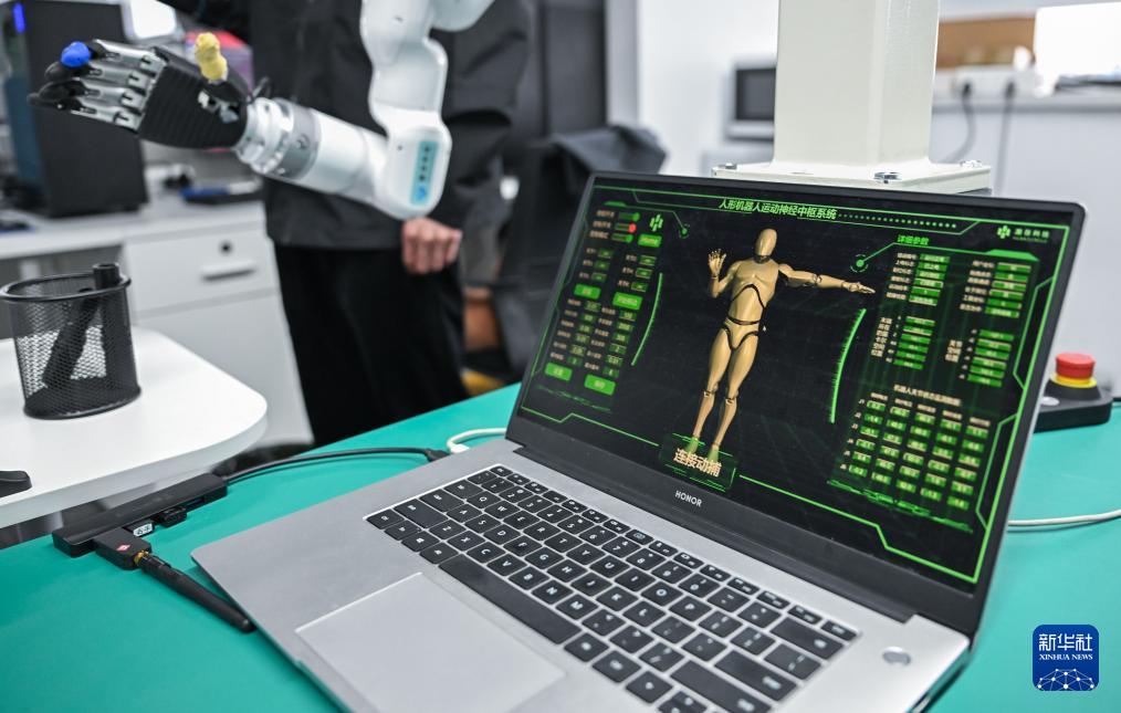 ??3月24日,研發(fā)人員在調試人形機器人運動神經(jīng)中樞系統(tǒng)。