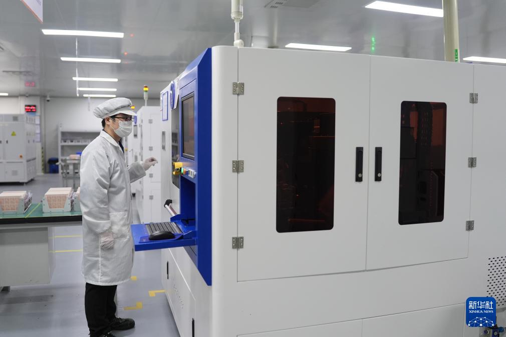 技術工人在寧波江豐同芯半導體材料有限公司的智能生產(chǎn)車間作業(yè)(3月20日攝)。