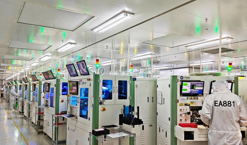 4月3日在重慶市天實精工科技有限公司無塵車間拍攝的攝像頭模組自動化生產(chǎn)作業(yè)現(xiàn)場。新華社發(fā)(田浩良攝)