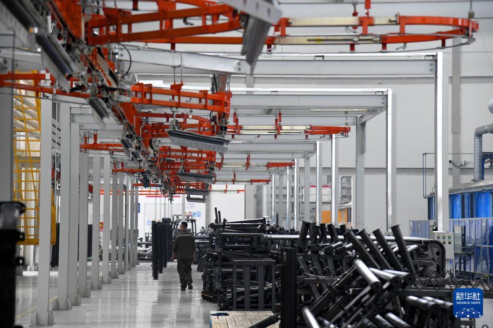 青島英派斯健康科技股份有限公司智慧工廠內(nèi)的自動(dòng)噴涂生產(chǎn)線(4月22日攝)。