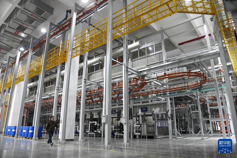 青島英派斯健康科技股份有限公司智慧工廠內的自動噴涂生產(chǎn)線(4月22日攝)。