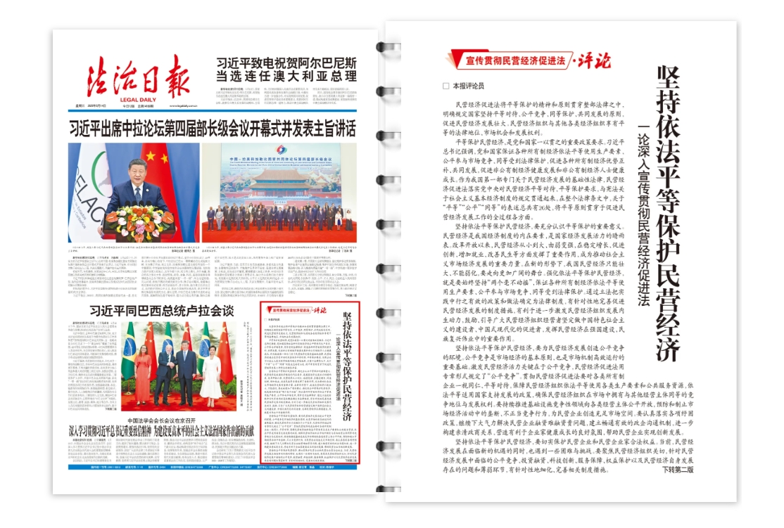 平等保護(hù)民營(yíng)經(jīng)濟(jì),是黨和國(guó)家一以貫之的重要政策要求。習(xí)近平總書(shū)記強(qiáng)調(diào),黨和國(guó)家保證各種所有制經(jīng)濟(jì)依法平等使用生產(chǎn)要素、公平參與市場(chǎng)競(jìng)爭(zhēng)、同等受到法律保護(hù),促進(jìn)各種所有制經(jīng)濟(jì)優(yōu)勢(shì)互補(bǔ)、共同發(fā)展,促進(jìn)非公有制經(jīng)濟(jì)健康發(fā)展和非公有制經(jīng)濟(jì)人士健康成長(zhǎng)。作為我國(guó)第一部專門關(guān)于民營(yíng)經(jīng)濟(jì)發(fā)展的基礎(chǔ)性法律,民營(yíng)經(jīng)濟(jì)促進(jìn)法落實(shí)黨中央對(duì)民營(yíng)經(jīng)濟(jì)平等對(duì)待、平等保護(hù)要求,與憲法關(guān)于社會(huì)主義基本經(jīng)濟(jì)制度的規(guī)定貫通起來(lái),在整個(gè)法律條文中,關(guān)于“平等”“公平”“同等”的表述總共有26處,將平等原則貫穿于促進(jìn)民營(yíng)經(jīng)濟(jì)發(fā)展工作的全過(guò)程各方面。