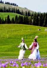 在新疆,最美的景色總是在路上。當你踏上伊犁的旅程,那些綿亙的雪峰、爛漫的山花、險峻的幽壑、無垠的草原、奔馳的駿馬,便會不停地闖入視野,直讓人目不暇接,感嘆江山如畫、人在畫中。