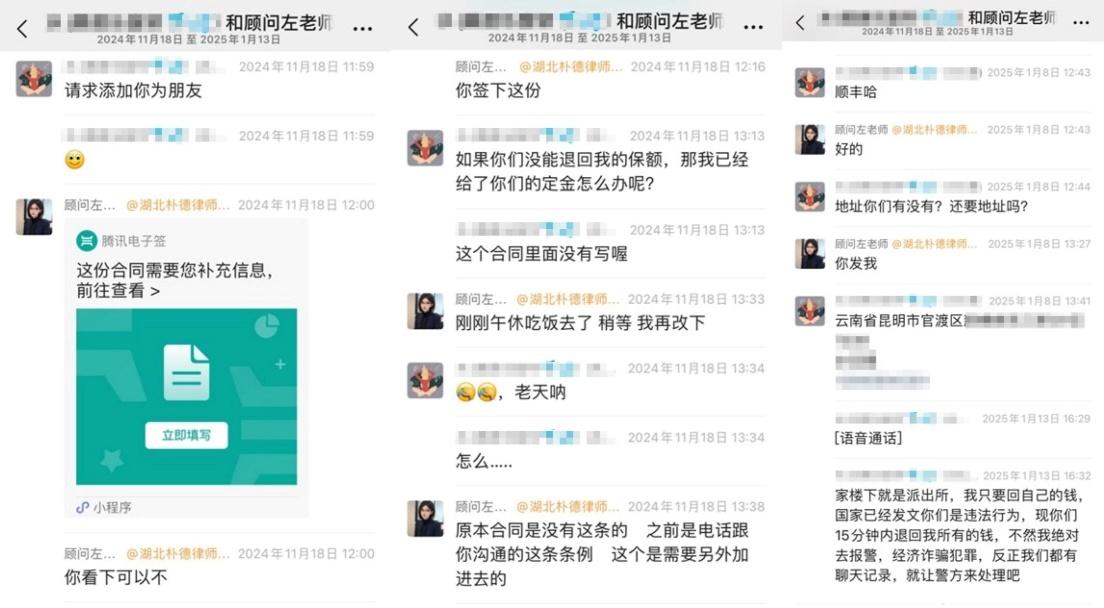 2024年12月,江西客戶S女士在網(wǎng)上看到一則“代理退保”的廣告,聲稱(chēng)“全額退保,不成功不收費(fèi)”。因當(dāng)時(shí)經(jīng)濟(jì)壓力較大,并且缺乏對(duì)黑產(chǎn)中介的了解,S女士接觸了該所謂的“專(zhuān)業(yè)代理機(jī)構(gòu)”。在對(duì)方的誘導(dǎo)下,客戶以“銷(xiāo)售誤導(dǎo)”等虛假理由投訴保險(xiǎn)公司,要求全額退保,同時(shí)還向?qū)Ψ街Ц读?800元作為“定金”。然而后續(xù)幾天,S女士始終沒(méi)有等到對(duì)方的消息。