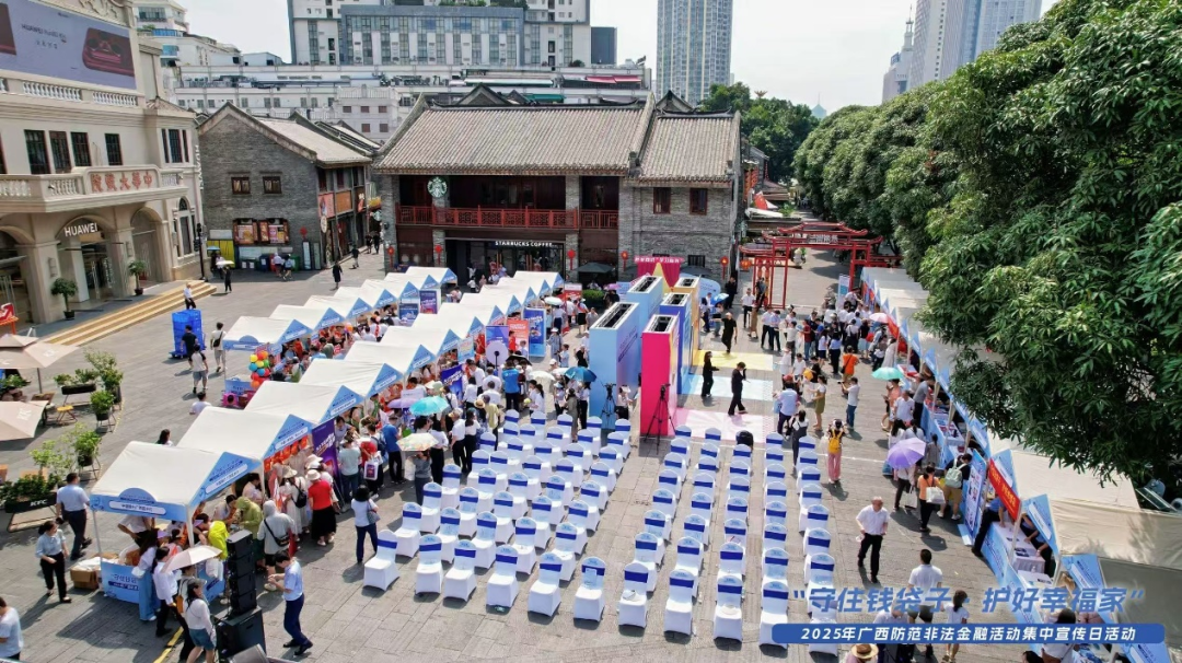 6月15日,廣西金融監(jiān)管局聯(lián)合中共廣西壯族自治區(qū)委員會金融委員會辦公室在南寧市三街兩巷歷史文化街區(qū)主辦2025年廣西防范非法金融活動集中宣傳日活動,聯(lián)合法院、檢察院、公安、市場監(jiān)管、民政等多家政府機關(guān)單位,以多維度、多視角協(xié)同構(gòu)建防非宣傳新格局。活動以多種形式深入社區(qū)、校園、鄉(xiāng)村、商圈、工廠等開展金融知識宣教,單場直播瀏覽量突破10.7萬人次。