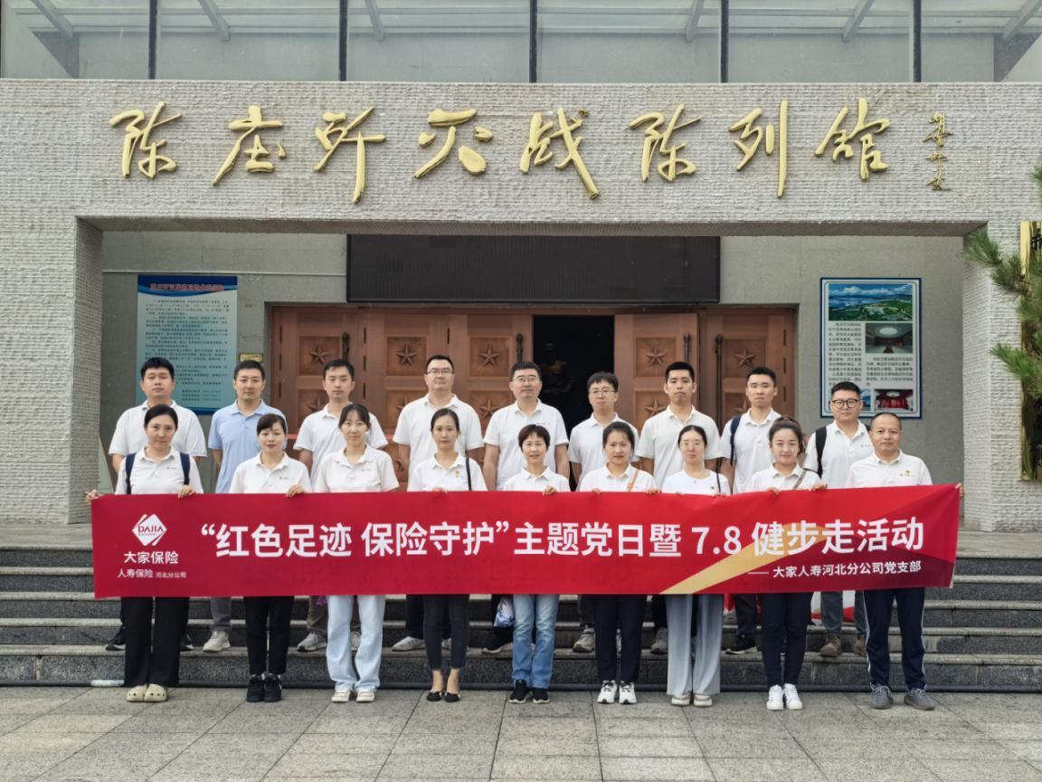 7月10日,大家人壽河北分公司黨支部組織本級(jí)及石家莊中支黨員、入黨積極分子,赴靈壽縣陳莊殲滅戰(zhàn)陳列館開展“紅色足跡 保險(xiǎn)守護(hù)”主題黨日暨7.8健步走活動(dòng),慶祝建黨104周年和抗戰(zhàn)勝利80周年,落實(shí)“7.8全國保險(xiǎn)公眾宣傳日”活動(dòng)要求。