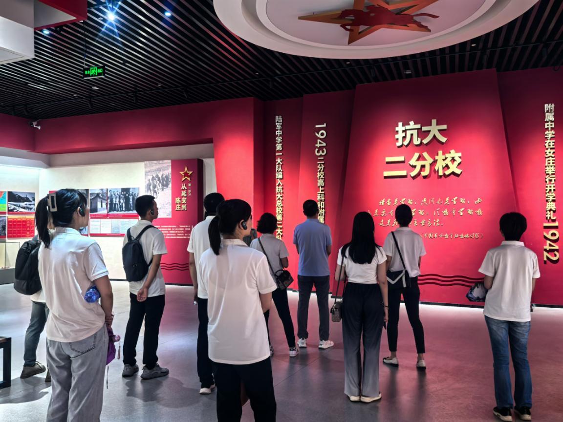 在陳列館,黨員們?cè)谥v解員引導(dǎo)下,透過賀龍?jiān)獛浭褂眠^的軍用地圖、繳獲武器及作戰(zhàn)沙盤,結(jié)合抗大二分校史料,重溫1939年八路軍120師在賀龍指揮下取得的陳莊殲滅戰(zhàn)重大勝利——這場殲敵1380余人的戰(zhàn)役,被譽(yù)為相持階段八路軍一次性殲敵最多的“模范殲滅戰(zhàn)”。大家深刻感悟了晉察冀邊區(qū)在持久抗戰(zhàn)中的戰(zhàn)略支撐作用和先輩們的革命精神。