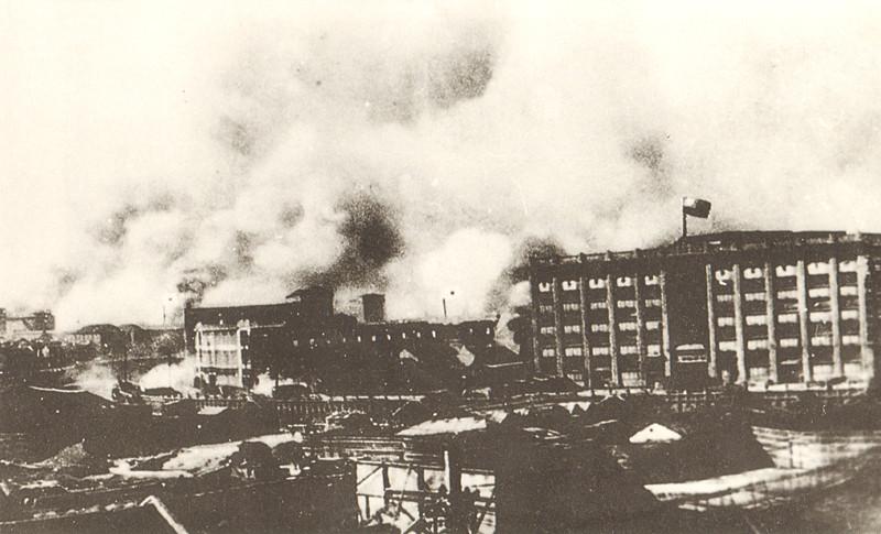 戰(zhàn)火籠罩下的四行倉(cāng)庫(kù)。 (資料圖片)