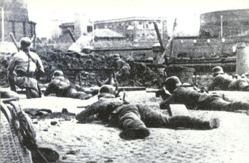 為阻止日軍繼續(xù)深入,中國(guó)軍隊(duì)第十八軍的將士們,面對(duì)日軍飛機(jī)大炮的狂轟濫炸,每日數(shù)次沖鋒,傷亡枕藉,仍死守不退。鎮(zhèn)內(nèi)的每一條街道、每一座房屋,都成了戰(zhàn)場(chǎng)。戰(zhàn)士們?cè)谙鯚煆浡写┧螅c日軍展開(kāi)激烈的巷戰(zhàn)。