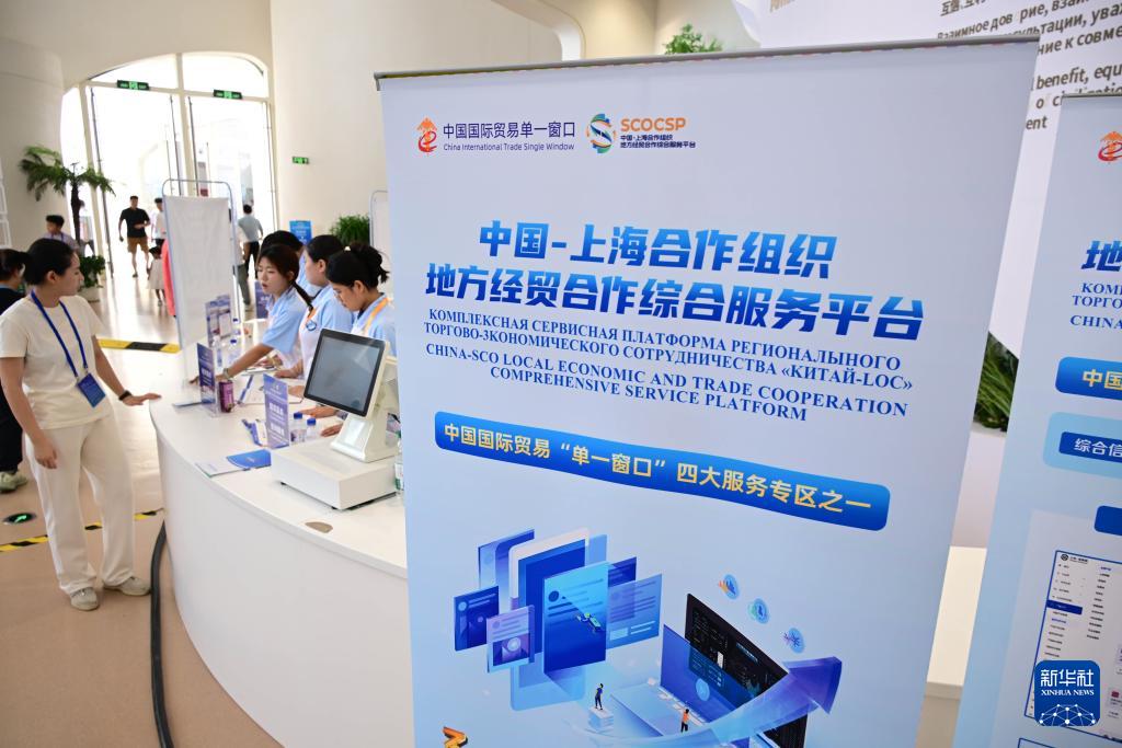 7月18日,中國(guó)-上海合作組織地方經(jīng)貿(mào)合作綜合服務(wù)平臺(tái)工作人員在2025上海合作組織國(guó)際投資貿(mào)易博覽會(huì)上作推介。