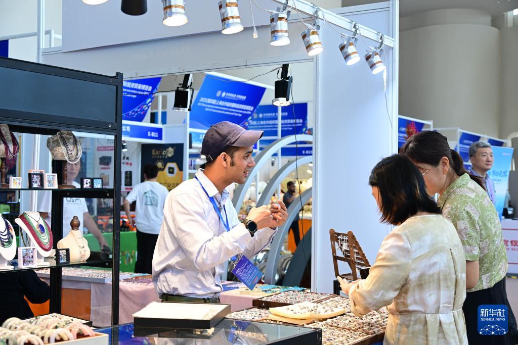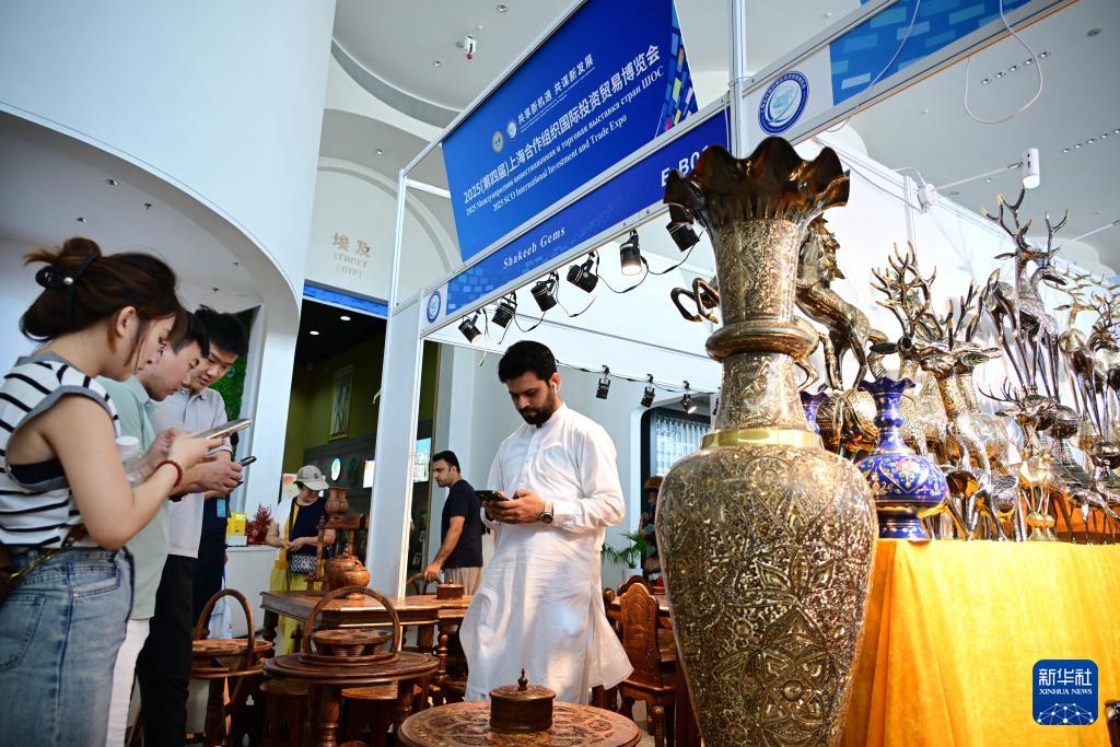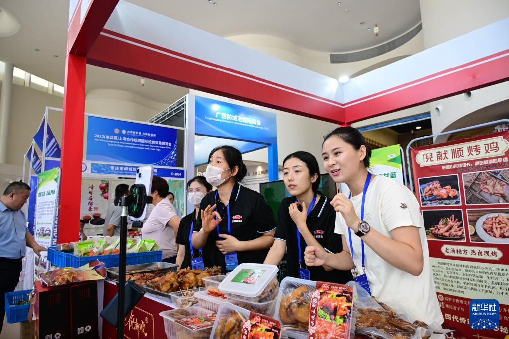 7月18日,一家參展商在2025上海合作組織國(guó)際投資貿(mào)易博覽會(huì)上直播。
