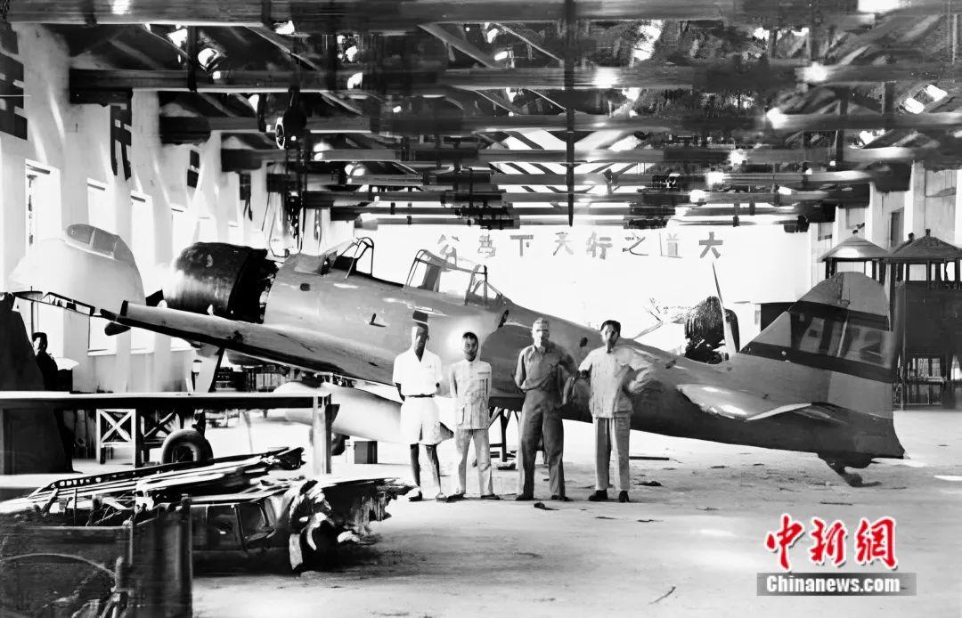 1942年,柳機(jī)工程師支援美國飛虎隊(duì)修理俘獲的日本零式戰(zhàn)斗機(jī)。劉麗虹提供