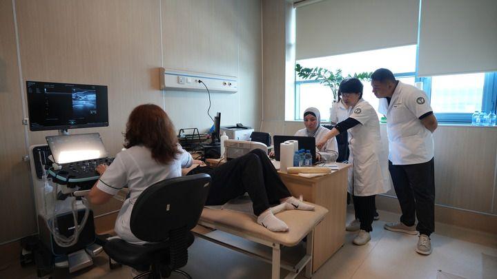 7月16日,天津市抗癌協(xié)會、天津醫(yī)科大學腫瘤醫(yī)院的醫(yī)療隊專家在阿塞拜疆與當?shù)蒯t(yī)院的超聲醫(yī)生聯(lián)合開展乳腺癌篩查。宋瑞 攝