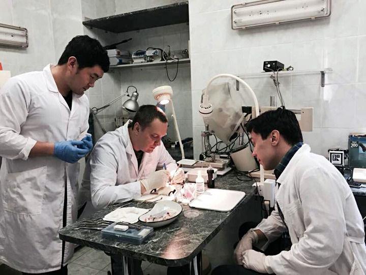 張超(左)在和俄羅斯學者一同進行醫(yī)學實驗。受訪者供圖