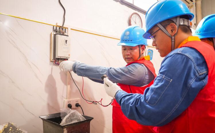 濉溪縣供電公司黨員服務(wù)隊(duì)正在幫助店主檢查用電安全隱患。儲運(yùn)濤攝
