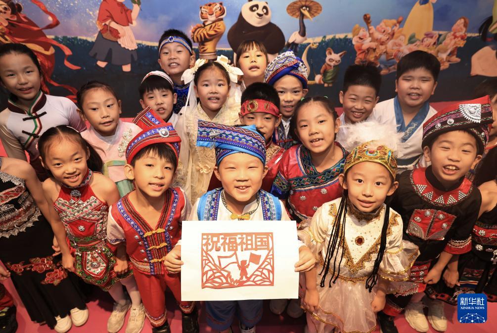 9月25日,在湖北省武漢市,未來實(shí)驗(yàn)小學(xué)學(xué)生開展迎國慶主題活動。