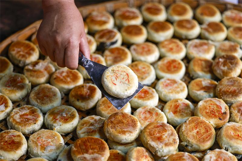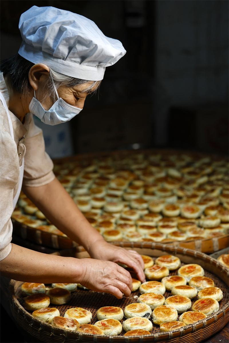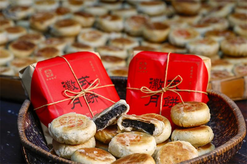 臨近中秋,在有著1700多年歷史的安徽省休寧縣萬安老街內,制餅師傅經過“制油酥、搟面皮、包餡、固形、蓋印和烘烤”等多道工序后,制作出外酥里糯、口感鮮美的“徽式麻仁月餅”,作為古徽州中秋佳節(jié)傳統(tǒng)糕點,深受百姓喜愛。
