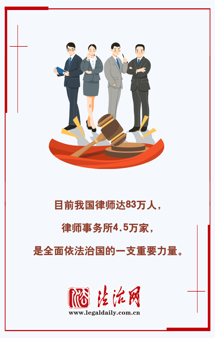 目前,我國律師達83萬人,律師事務(wù)所4.5萬家,是全面依法治國的一支重要力量?!笆奈濉逼陂g,司法部在引導好、管理好、服務(wù)好律師隊伍上持續(xù)采取務(wù)實措施,團結(jié)凝聚廣大律師充分發(fā)揮職能作用。律師工作哪些亮點不容錯過?一圖解鎖!
