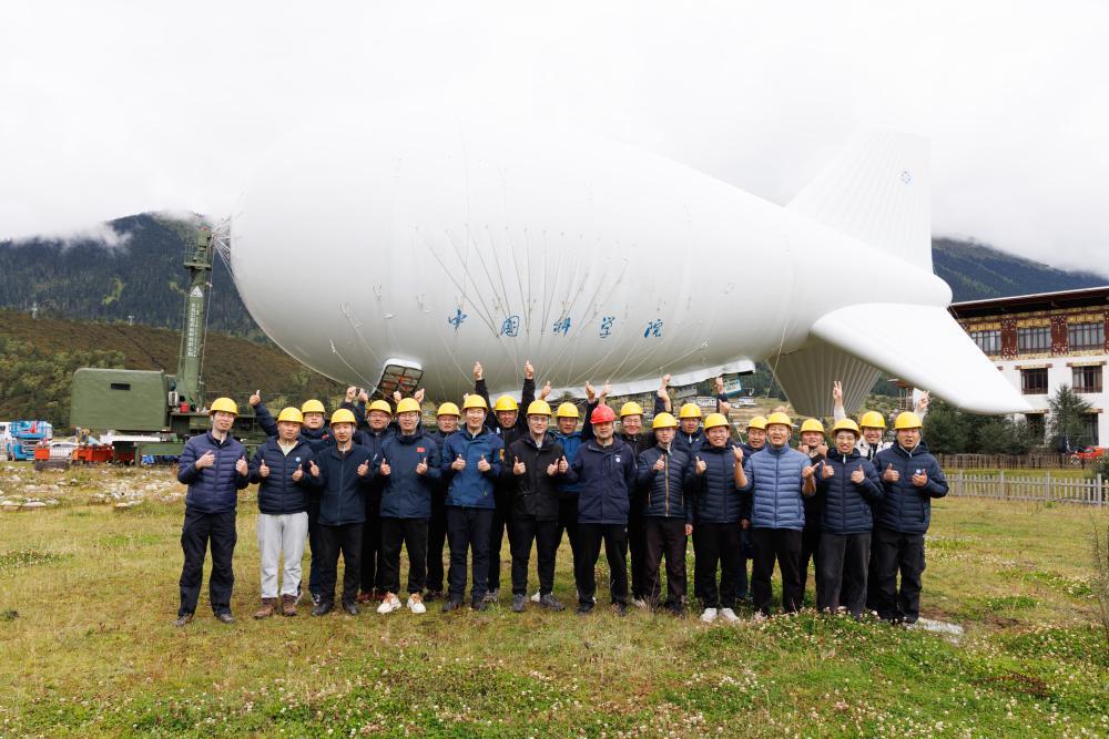 “極目一號(hào)”浮空艇試驗(yàn)隊(duì)部分成員合影(2025年9月18日攝)。新華社記者 金立旺 攝