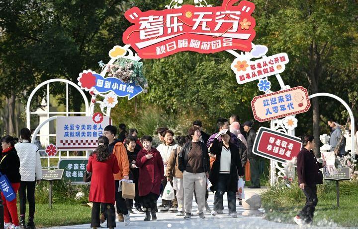 2025年10月22日,人們?cè)谔旖蚴斜背絽^(qū)第二屆銀齡幸福月活動(dòng)現(xiàn)場(chǎng)游園。新華社記者 李然 攝