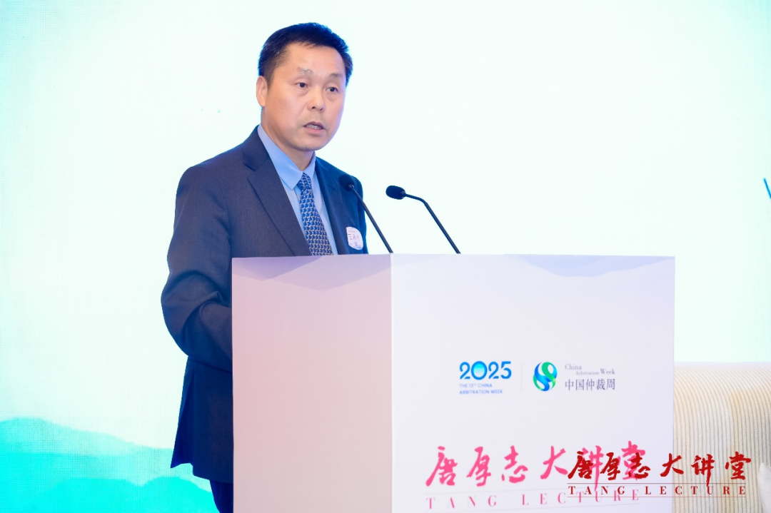 王承杰在致辭中介紹,唐厚志大講堂是為了紀(jì)念我國仲裁事業(yè)的重要奠基人和開拓者唐厚志先生而設(shè)立。近年來,黨和國家高度重視并積極推動仲裁事業(yè)發(fā)展,黨的二十屆三中全會對深化仲裁制度改革,健全國際商事仲裁制度、培育國際一流仲裁機(jī)構(gòu)提出了明確要求;今年7月,司法部專門召開涉外仲裁工作座談會,研究加快推進(jìn)涉外仲裁工作高質(zhì)量發(fā)展,實施中國特色的國際一流仲裁機(jī)構(gòu)培育工程。9月12日,十四屆全國人大常委會第十七次會議表決通過新修訂的仲裁法,自2026年3月1日起施行,為國際商事仲裁中心建設(shè)提供立法保障。