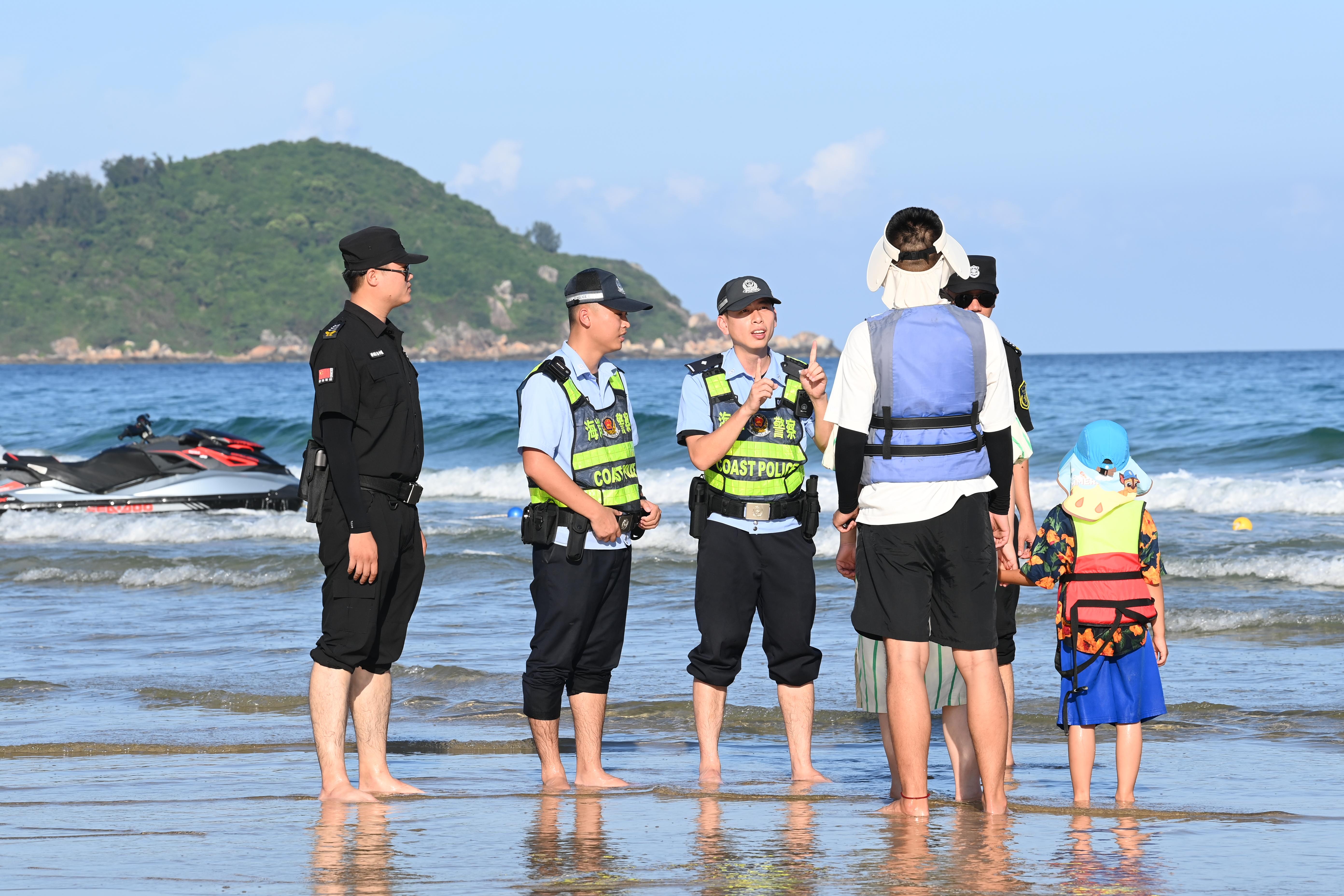 今年以來(lái),海南省三亞市公安局旅游警察支隊(duì)聚焦聚力主動(dòng)警務(wù)、預(yù)防警務(wù),統(tǒng)籌推進(jìn)旅游治安打、防、管、治,持續(xù)凈化旅游市場(chǎng)治安環(huán)境。圖為支隊(duì)民警近日在亞龍灣海灘執(zhí)勤。 本報(bào)記者 邢東偉 本報(bào)通訊員 田和新 攝