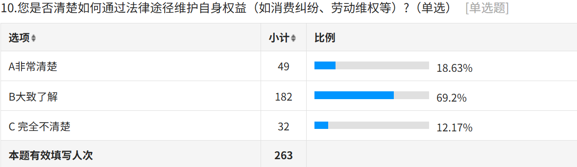 圖一:“您是否清楚如何通過法律途徑維護自身權益”問題的調查問卷結果