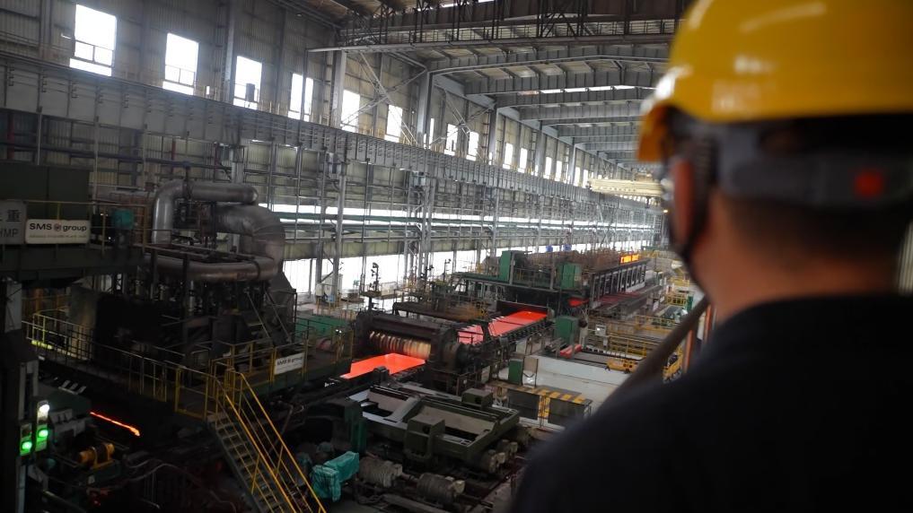 在山東鋼鐵集團(tuán)日照有限公司中厚板廠(chǎng)爐卷熱軋作業(yè)區(qū),一塊厚達(dá)150毫米的通紅鋼坯穿過(guò)軋機(jī),經(jīng)過(guò)一系列精密控制,如同“攤煎餅”般制成寬3250毫米、厚3.5毫米的超大寬厚比中厚板。