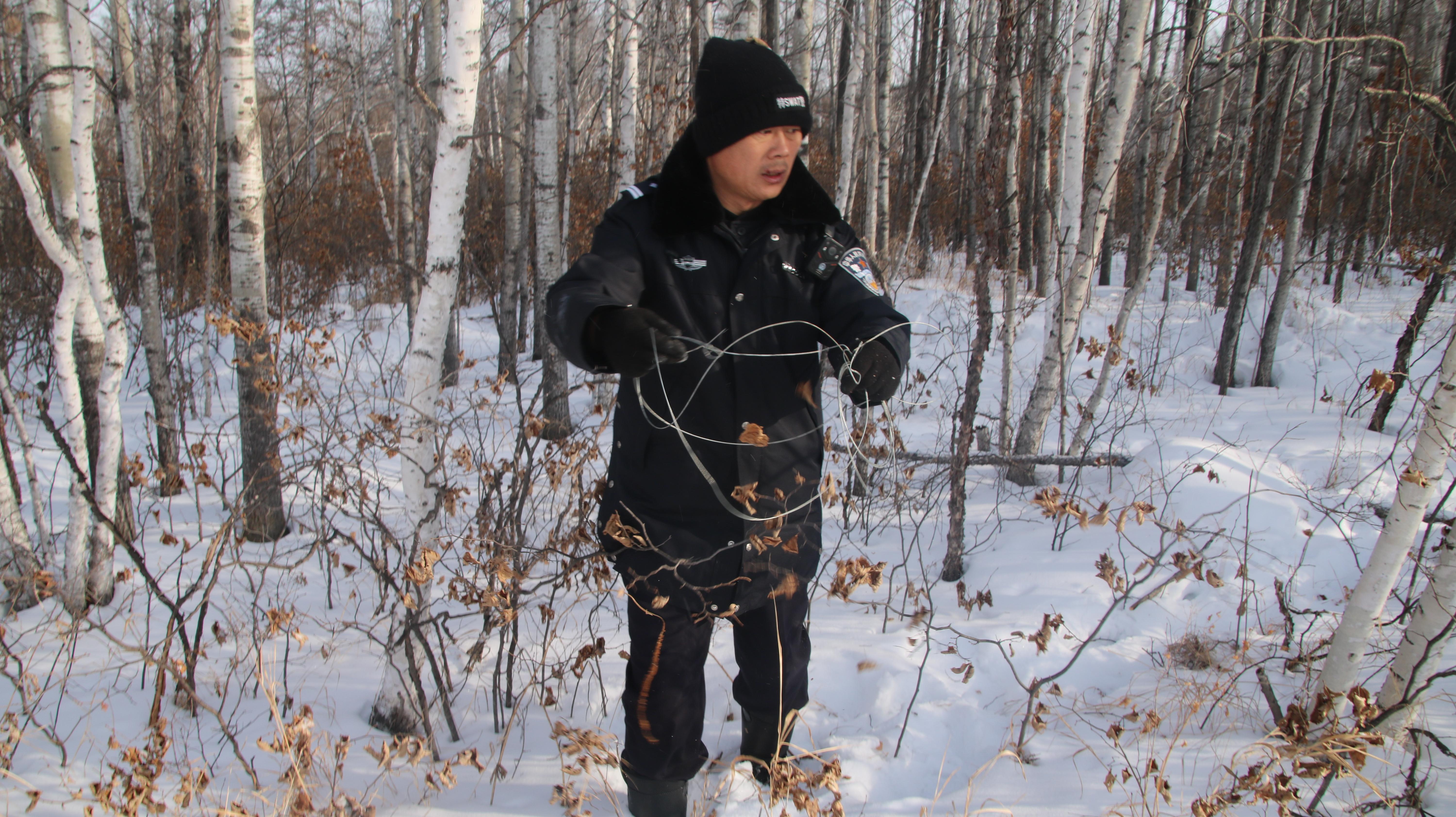 “蘇力得,你看這邊!”王云良在一處灌木叢旁停下,撥開積雪,一根細(xì)細(xì)的鋼絲繩套赫然出現(xiàn),一端牢牢拴在樹干上,另一端隱沒(méi)在枯草中,“這是針對(duì)狍子、野兔設(shè)置的獵套,要是有人不小心踩進(jìn)去,后果不堪設(shè)想?!?/p>