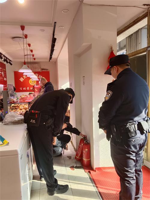 民警對商超開展日常安全檢查,維護(hù)轄區(qū)經(jīng)營秩序 惠寧寧/攝