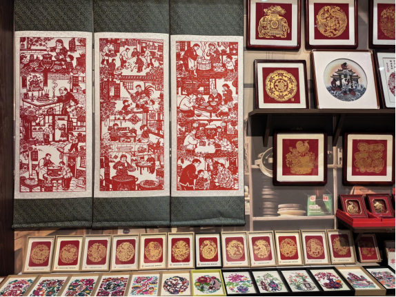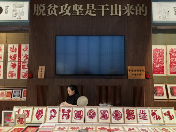 這是中國(guó)工藝美術(shù)館里的豐寧滿族剪紙非遺工坊。新華網(wǎng)記者 唐斕 攝