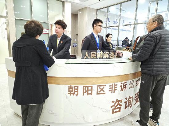 圖為北京市朝陽區(qū)非訴訟糾紛化解中心工作人員正在接待咨詢群眾。