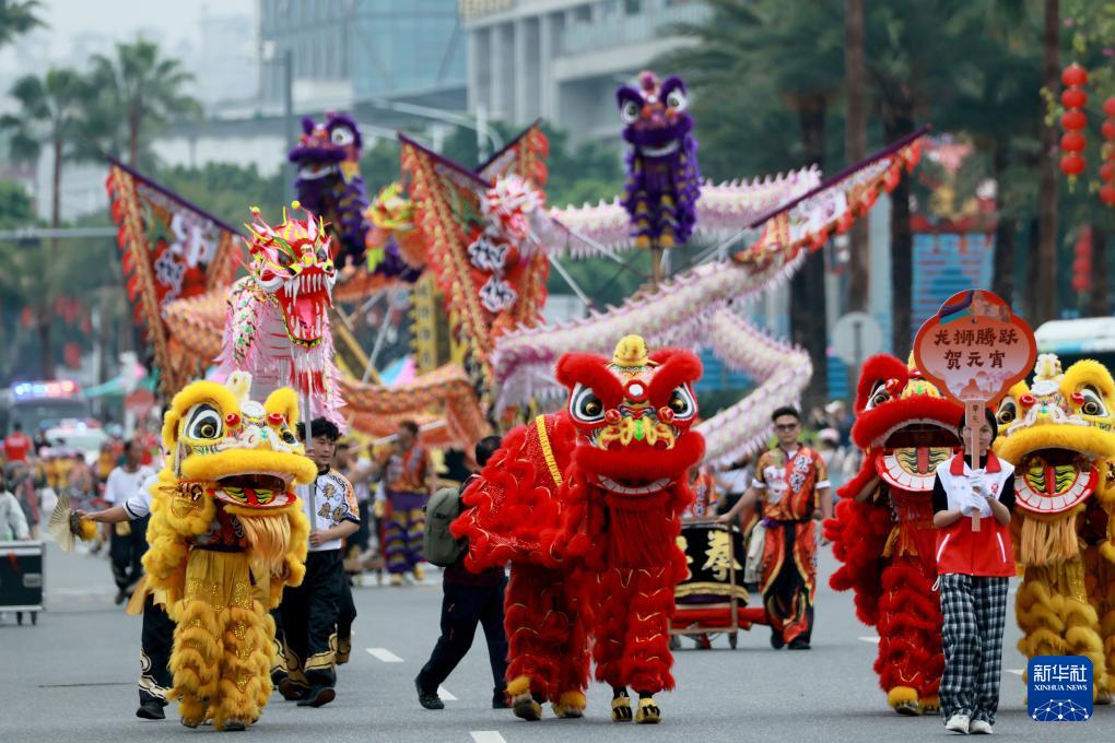 3月1日,廣東省肇慶市端州區(qū)舉行“廣府風韻匯星湖 多彩非遺鬧元宵”2026肇慶廣府文化廟會非遺巡游展演活動。這是南獅表演。
