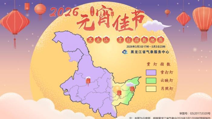 2026年元宵節(jié)黑龍江賞燈指數(shù)地圖(2026年3月3日17時至3日23時)。 黑龍江省氣象局供圖
