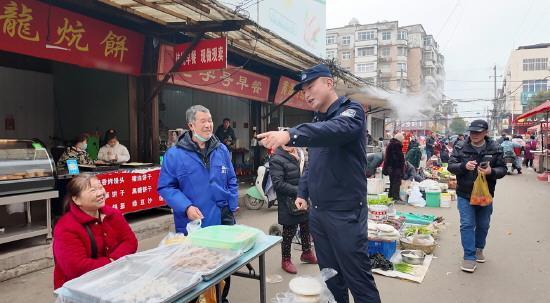 圖為漁薪派出所副所長(zhǎng)孫余沵叮囑商戶繃緊安全弦。