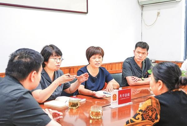 “共享法庭不僅是一個物理空間,更是一個制度、一份理念;庭務(wù)主任也不只是一個職務(wù),而是一種氛圍、一份行動?!睏顕儆凶约旱睦斫猓肮蚕矸ㄍゾ褪亲屧絹碓蕉嗳藚⑴c到普法、知法、懂法、守法的氛圍里。我特別想在‘家門口’帶動這樣的法治氛圍?!保ㄓ嘟ㄈA 潘墨欽)