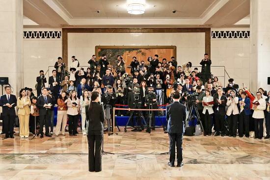 圖② 3月9日,十四屆全國人大四次會議第二場“代表通道”集中采訪活動吸引眾多媒體記者的關(guān)注。