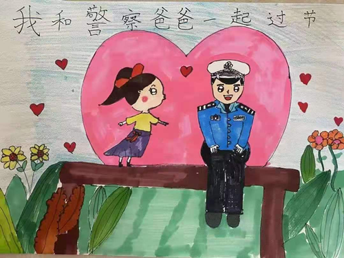 圖為父親節(jié)前夕,邵廣軍小女兒為爸爸精心準備的父親節(jié)禮物——她畫的“警察爸爸”