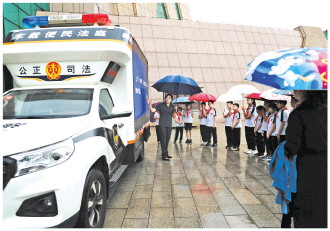5月22日是國際生物多樣性日,重慶市渝北區(qū)人民法院與重慶自然博物館共同邀請西南師范大學(xué)實(shí)驗(yàn)小學(xué)學(xué)生走進(jìn)重慶自然博物館,通過“法治教育+科普展覽”,讓環(huán)保理念深植同學(xué)們心中。圖為法院干警在車載便民法庭旁向同學(xué)們講解長江“十年禁漁”計(jì)劃。