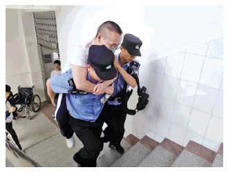 圖為湖北省襄陽市公安局高新區(qū)分局民警將殘疾考生背進(jìn)考場。